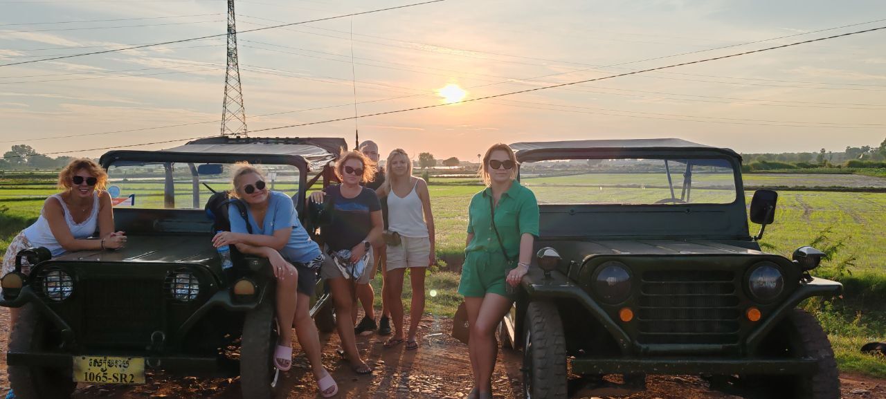 A vintage Jeep ride through the Siem Reap countryside at sunset would offer a unique and memorable perspective on the region. The countryside aroun